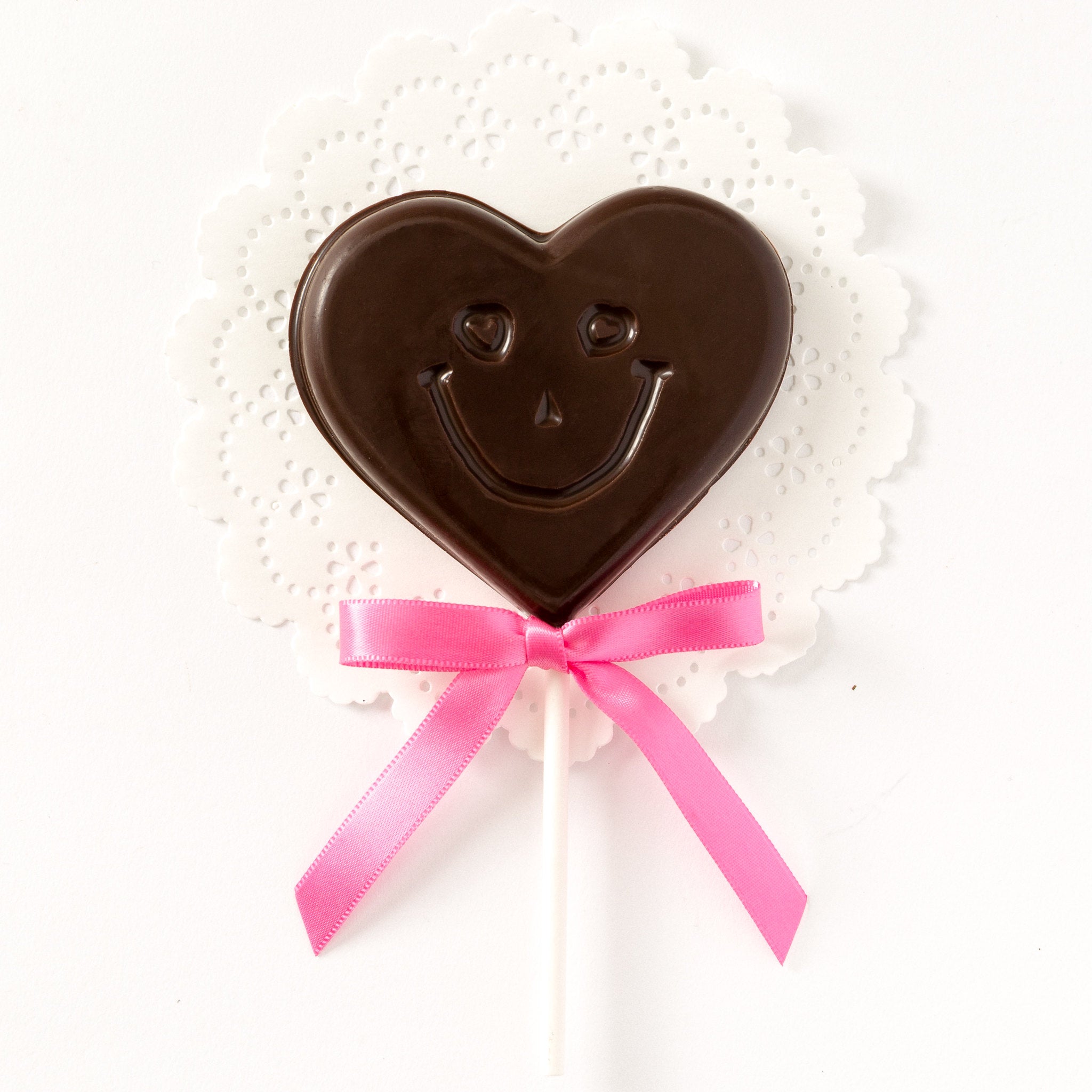 Make your Valentine smile with this happy chocolate heart pop! Choose between delicious milk, dark, or white chocolate.
