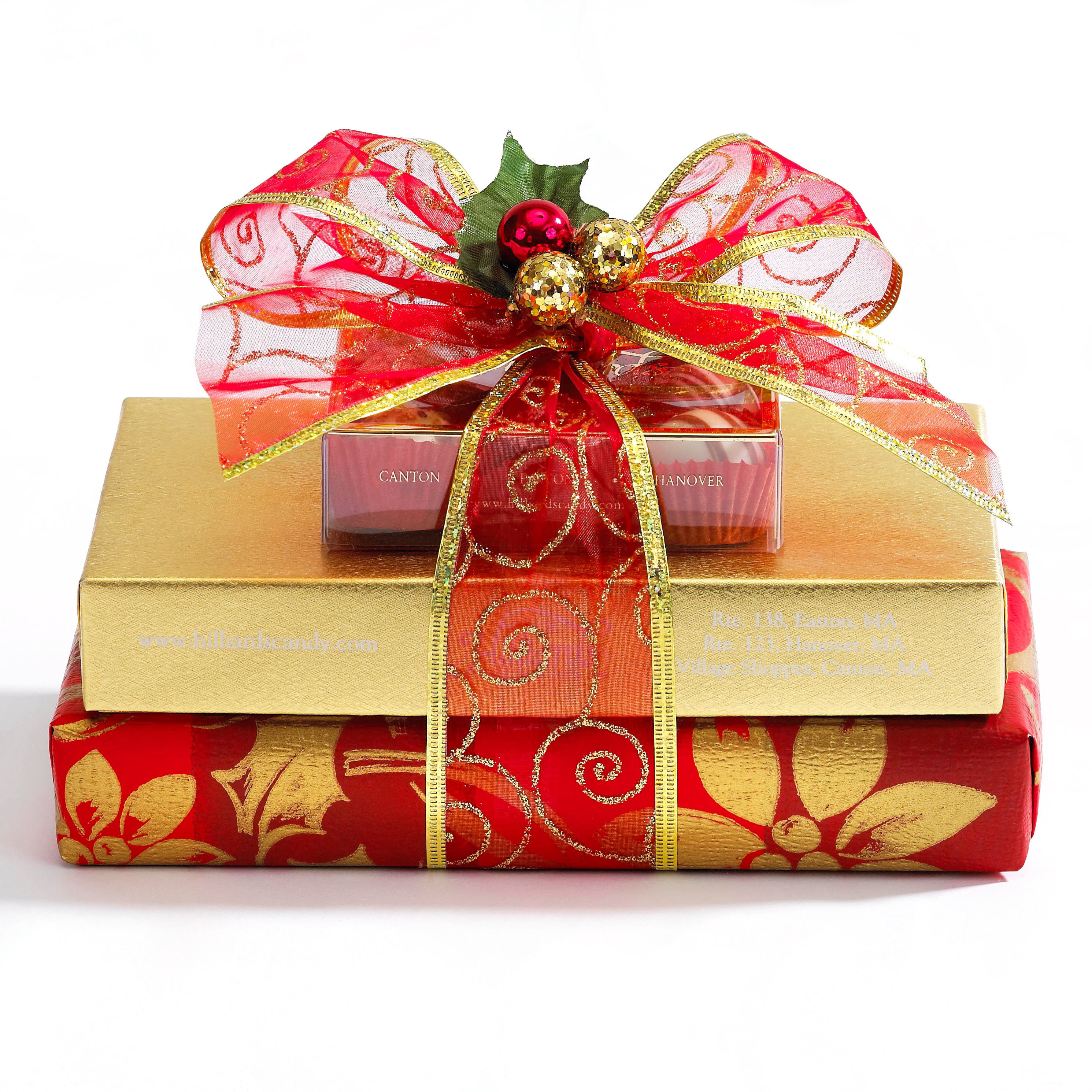 A great combination of Chocolates, Almond Toffee Crunch (also known as “Buttercrunch”) topped off with bedazzling shiny foil wrapped truffles. Contents include a 7 oz. Popular Assortment of Chocolates, 7.5 oz. Almond Toffee Crunch, and 9 Colorful Foil Wrapped Truffles.